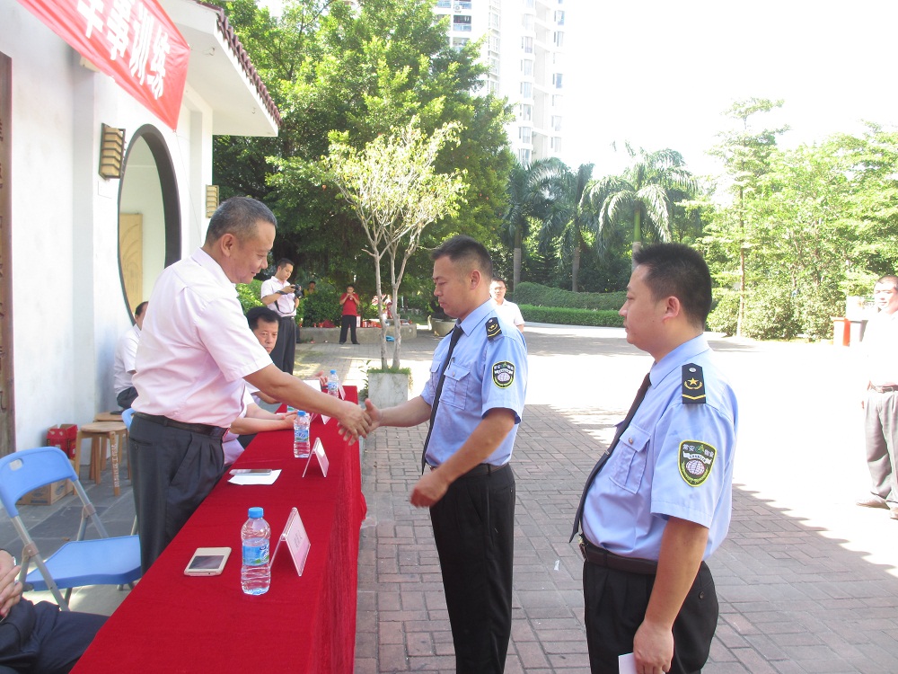 2016年7月29日下午15時,深圳市常安物業(yè)服務有限公司組織退伍軍人在前海花園三期廣場舉辦了“常安物業(yè)2016年慶八一軍事訓練”活動。在常安物業(yè)公司領導的高度關注下,退伍軍人不懼高溫的天氣,頂著酷暑完成交通指揮手勢、疊軍被、消防演習三個活動內(nèi)容,為鼓勵軍事化管理工作的持續(xù)開展,本次活動頒發(fā)了一、二、三等獎。最后,張武董事長進行了精彩的講話,鼓勵退伍軍人把部隊嚴明的組織紀律,嚴謹?shù)墓ぷ髯黠L,嚴肅的工作態(tài)度和不怕吃苦、勇于拼搏、甘于奉獻的好思想、好傳統(tǒng)、好作風帶到各自的工作崗位之中,發(fā)揮“退伍不褪色”的軍人品質(zhì)。