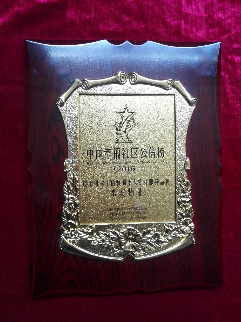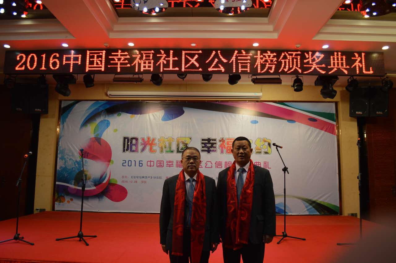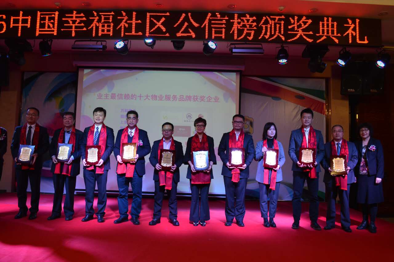 由《住宅與房地產(chǎn)》雜志主辦,物業(yè)管理微信平臺(tái)協(xié)辦的“2016中國(guó)幸福社區(qū)公信榜頒獎(jiǎng)典禮”,歷經(jīng)15天逾百萬(wàn)人積極投票,于2016年12月28日分別公布了7個(gè)獎(jiǎng)項(xiàng)的獲獎(jiǎng)?wù)呒邦C發(fā)榮譽(yù)獎(jiǎng)牌。