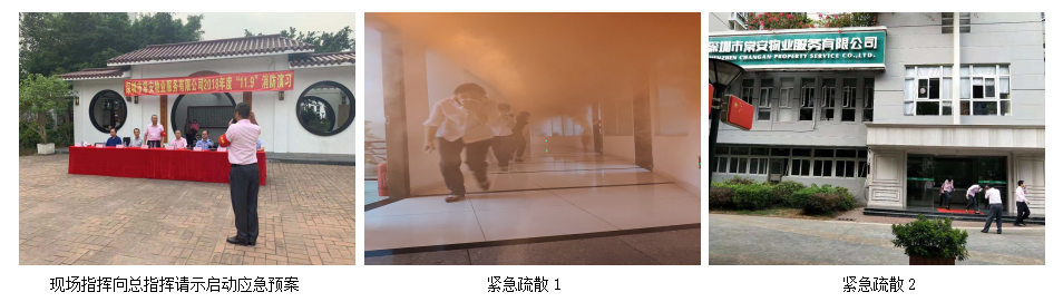 緊急預(yù)案啟動后,總指揮常安物業(yè)董事長張武和現(xiàn)場指揮常安物業(yè)安全主管曾德良在現(xiàn)場組織疏散、警戒、滅火、報(bào)警、救護(hù)、后勤、設(shè)備保障、消防車指引等9個(gè)應(yīng)急小組全面參與到火災(zāi)撲滅的現(xiàn)場救援工作之中,應(yīng)急工作分工明確,滅火演練有條不紊的進(jìn)行。