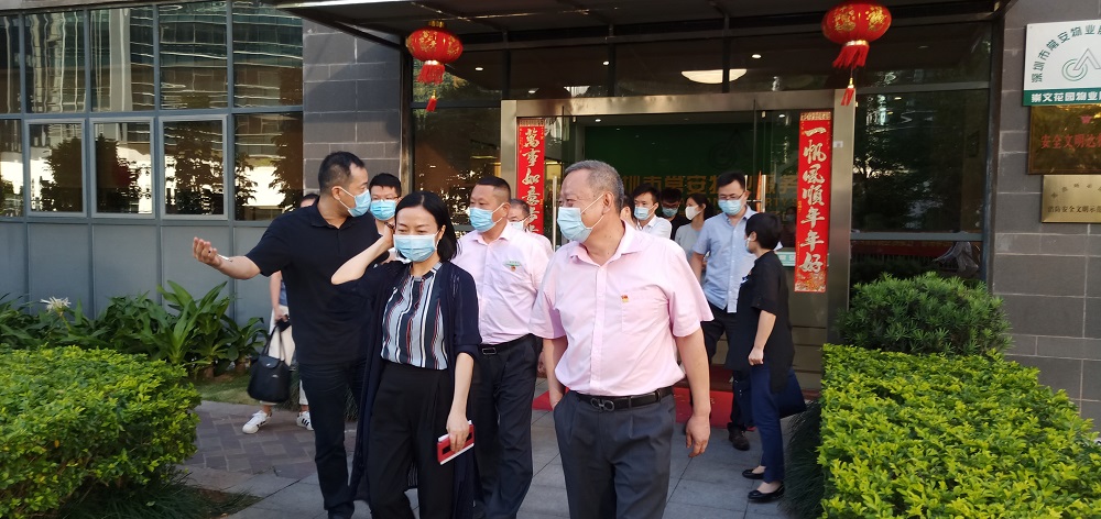 2020年6月4日下午,深圳市住房和建設(shè)局物業(yè)管理分管領(lǐng)導(dǎo)朱文芳副巡視員率物業(yè)監(jiān)管處張雁處長、仇晨卉副處長、瞿能友副處長、市建設(shè)科技促進(jìn)中心唐振忠副主任等一行16人到崇文花園專題調(diào)研檢查綠色物業(yè)管理和安全生產(chǎn)工作,深圳市常安物業(yè)服務(wù)有限公司張武董事長、黃國義副總經(jīng)理、孔凡泉總經(jīng)理助理兼崇文花園分公司經(jīng)理等陪同此次調(diào)研活動。