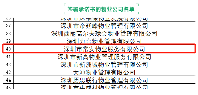 2020年9月17日,深圳市消委會(huì)、深圳市住房和建設(shè)局、深圳市物業(yè)管理行業(yè)協(xié)會(huì)召開(kāi)深圳市物業(yè)服務(wù)行業(yè)監(jiān)督暨自律公約新聞發(fā)布會(huì),發(fā)布了加入《深圳市物業(yè)服務(wù)行業(yè)自律公約》(以下簡(jiǎn)稱《自律公約》)的407家物業(yè)服務(wù)企業(yè)名單,深圳市常安物業(yè)服務(wù)有限公司志愿簽署該公約,成為自律物業(yè)服務(wù)行業(yè)中的一員。